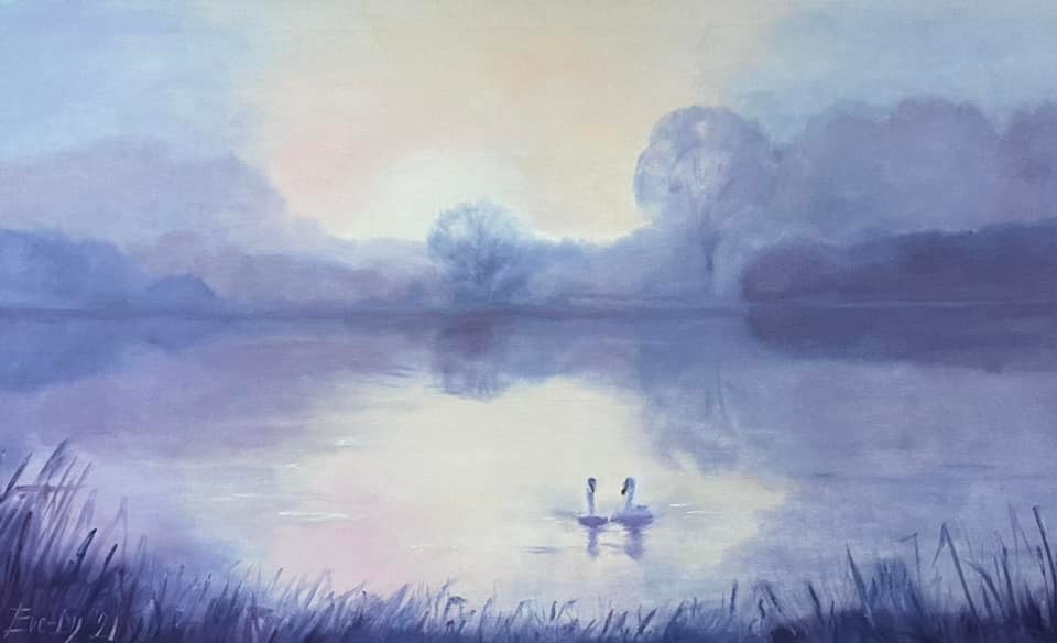 The Lake of Swan, 100 X 60 cm, oil painting, 2021